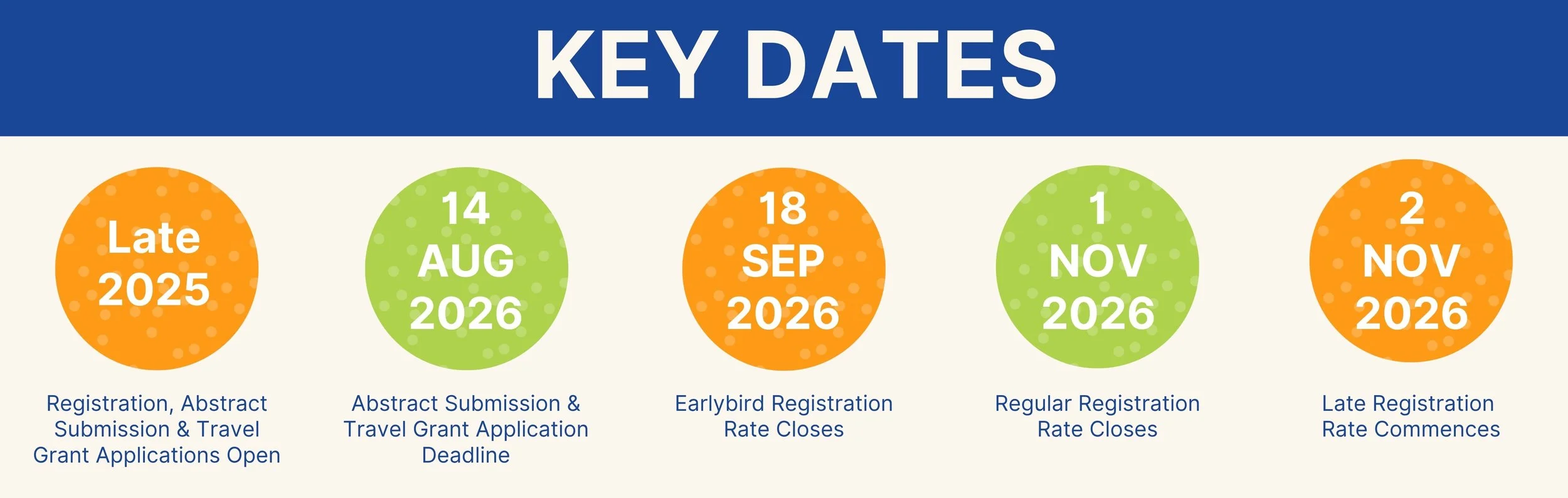 Abstracts are being considered for oral & poster presentation formats within the ICDS 2026 program. There will be a small number of single slide, 3-minute thesis presentations available for abstracts that are part of a higher research degree (e.g. PhD) whereby the candidate is attending ICDS 2026 in person.